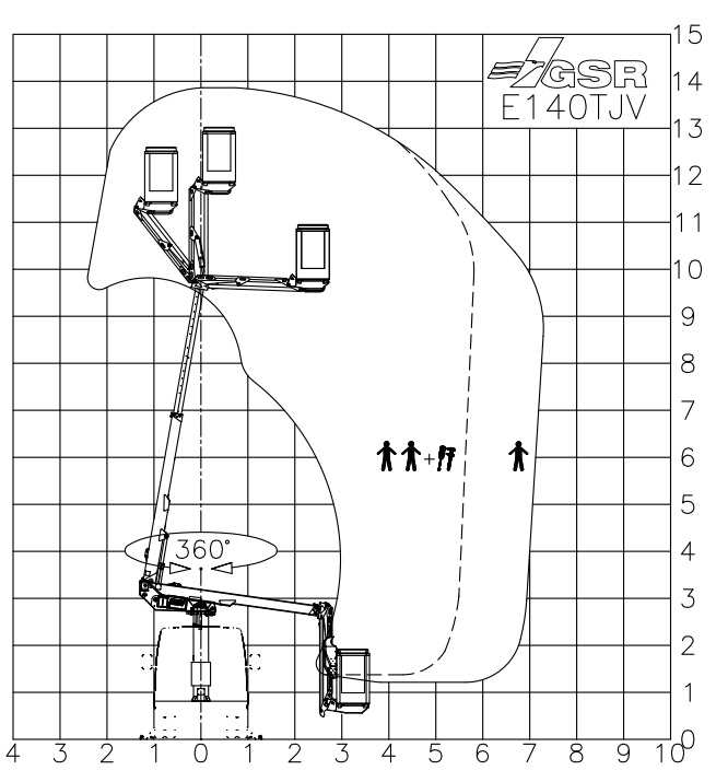 Der GSR B220TJ bietet eine Arbeitshöhe von ca. 22,00 m und eine Korblast von 250 kg, mit einer seitlichen Reichweite von etwa 14,00 m bei einer Last von 80 kg. Das Gesamtgewicht der Bühne beträgt dabei nur 3.500 kg, und darf mit Führerscheinen der Klasse B gefahren werden. Für den Einsatz in verschiedensten Umgebungen hat die Bühne kompakte Maße. Eine Durchfahrtbreite von ca. 2,19 m, eine Durchfahrthöhe von ca. 2,98 m Und eine Gesamtlänge von etwa 7,73 m.